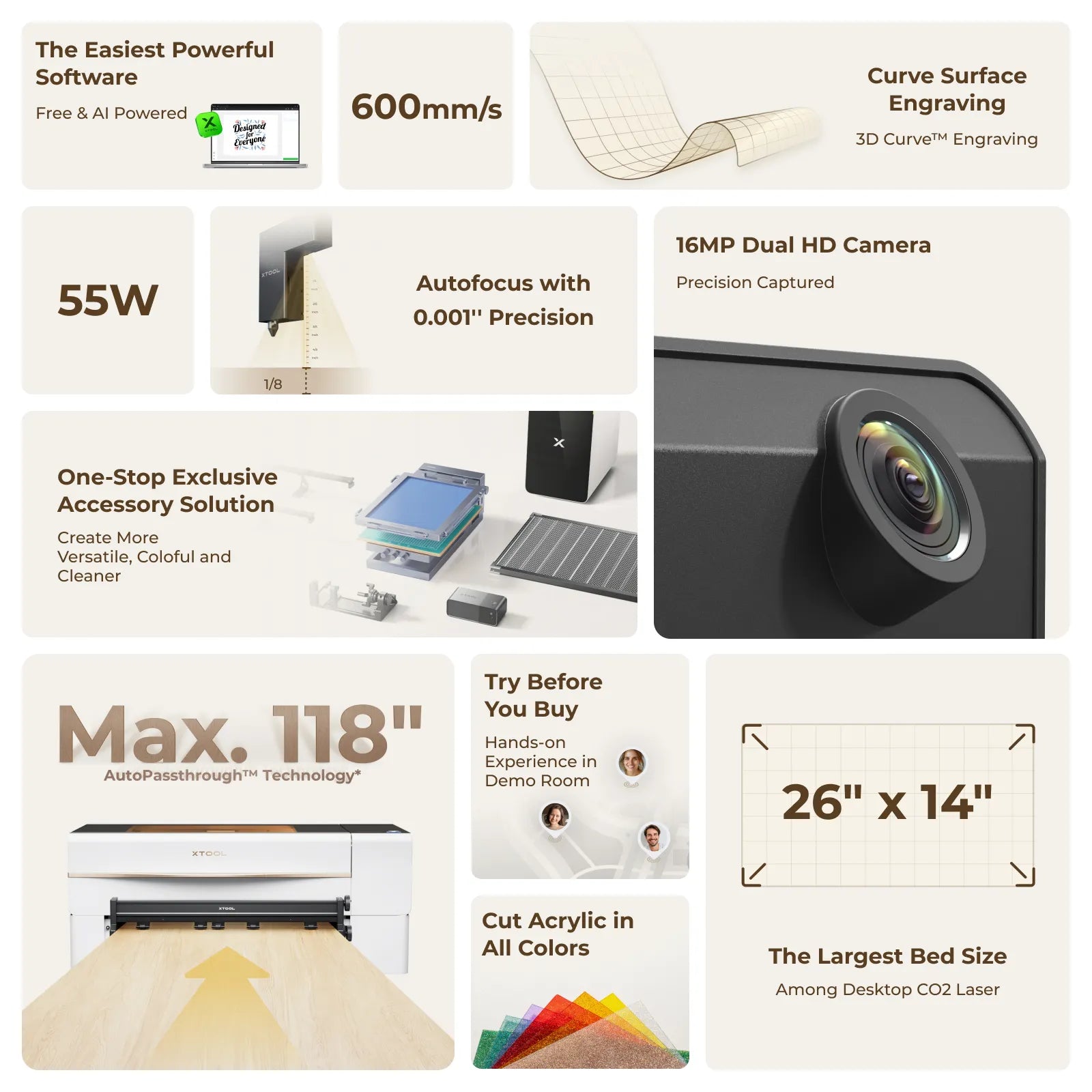 - 16MP Dual HD Camera: Sharper preview and finer precision for smaller materials.